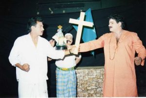 ജാതിയുടെയും,മതത്തിന്‍റെയും പിടിയിലമര്‍ന്നിരിയ്ക്കുന്ന ഇന്നത്തെ സമൂഹത്തിന്‍റെ കണ്ണ് തുറപ്പിയ്ക്കുവാൻ ,സമൂഹത്തില്‍ മനുഷ്യ നന്മ വിളംഭരം ചെയ്യാന്‍ ,പിറന്നു വീഴുന്ന കുട്ടികളില്‍ പോലും വര്‍ഗ്ഗീയ വിഷവിത്തു പാകുന്ന വരെ അതില്‍ നിന്ന് പിന്തിരിപ്പിയ്ക്കുവാൻ ഒക്കെ ഈ നാടകത്തിലെ സന്ദേശമുതകും എന്ന കാര്യത്തില്‍ സംശയമില്ല.സൗത്താല്‍ നാടക മത്സരത്തില്‍ “മതങ്ങളെ വാഴിമാറു” ഏറ്റവും മികച്ച നാടകമായി തെരഞ്ഞെടുക്കപെട്ടു.ക്രൊയ്ഡ ണിലും ഈ നാടകം അവതരിപ്പിച്ചു. പ്രൊഫസര്‍.കണ്ടച്ചിറ ബാബുവിന്‍റെ രചനയ്ക്ക് ശ്രീ.ബാബു വിന്‍റെ താണ് രംഗഭാഷ………..ഈ നാടകത്തിന്‍റെ മറ്റ് ശില്പികള്‍ ഇവരെല്ലാമാണ്.