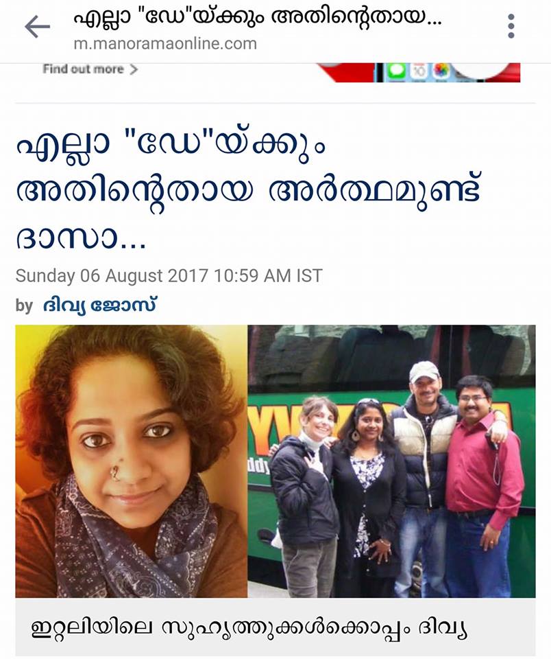 ദൈനം ദിനം തന്റെ ചുറ്റുപാടും നടക്കുന്ന എന്ത് ലൊട്ടുലൊടുക്കുകാര്യങ്ങളും വരെ , നല്ല കിണ്ണങ്കാച്ചിയായി , നർമ്മ ഭാവനയോടെ , തനി നാട്ടു ഭാഷാ ശൈലികളിൽ എഴുതിയിട്ട് വായനക്കാരെ കൊതിപ്പിക്കാനുള്ള ദിവ്യയുടെ കഴിവ് അപാരം തന്നെയാണ് …!