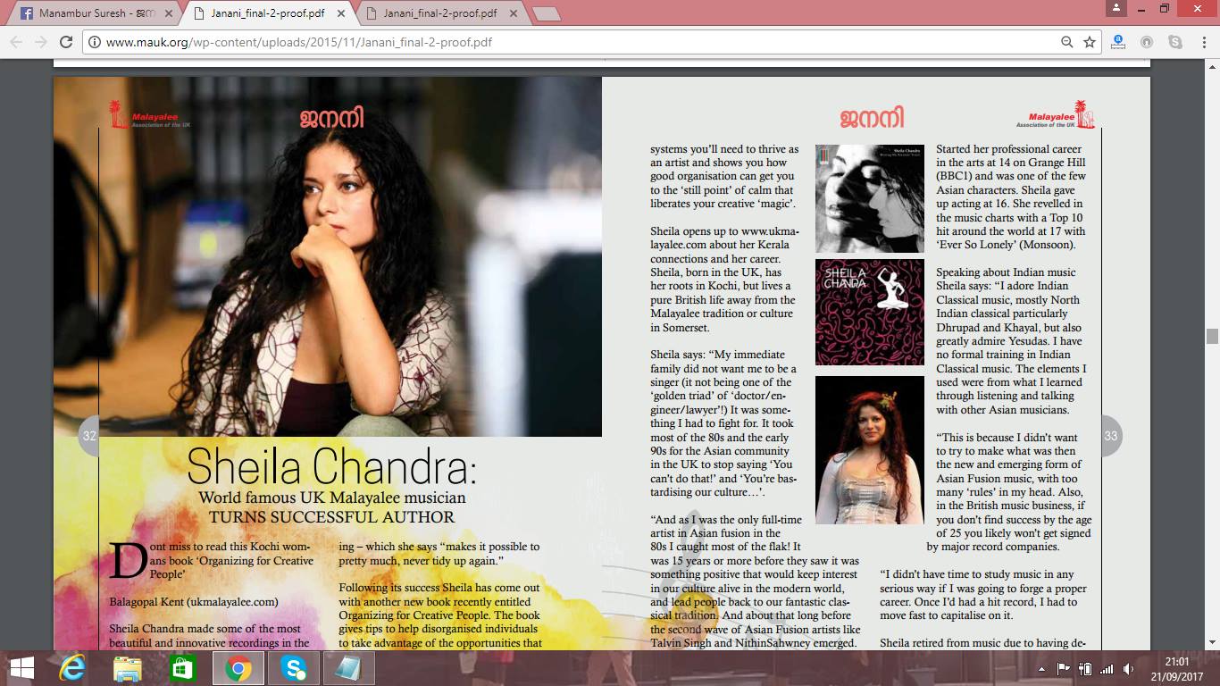തൃശൂരിലെ താലോർ സ്വദേശിനിയായ ,യു.കെയിലെ ഗാന കോകിലമായ ,പാട്ടുകാരിയും , എഴുത്തുകാരിയും