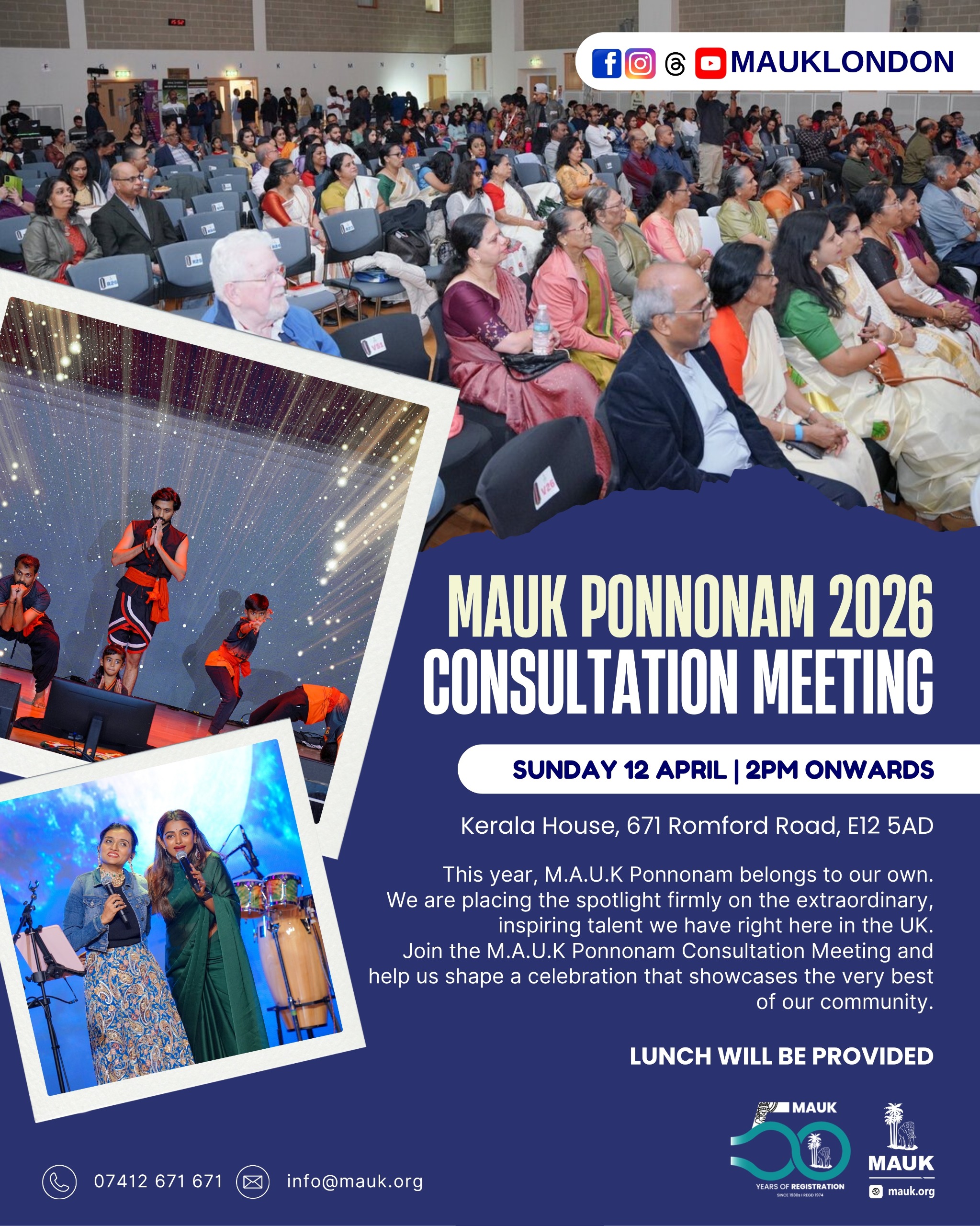 This year, M.A.U.K Ponnonam belongs to our own.We are placing the spotlight firmly on the extraordinary, inspiring talent we have right here in the UK. Join the M.A.U.K Ponnonam Consultation Meeting and help us shape a celebration that showcases the very best of our community. Lunch will be provided
