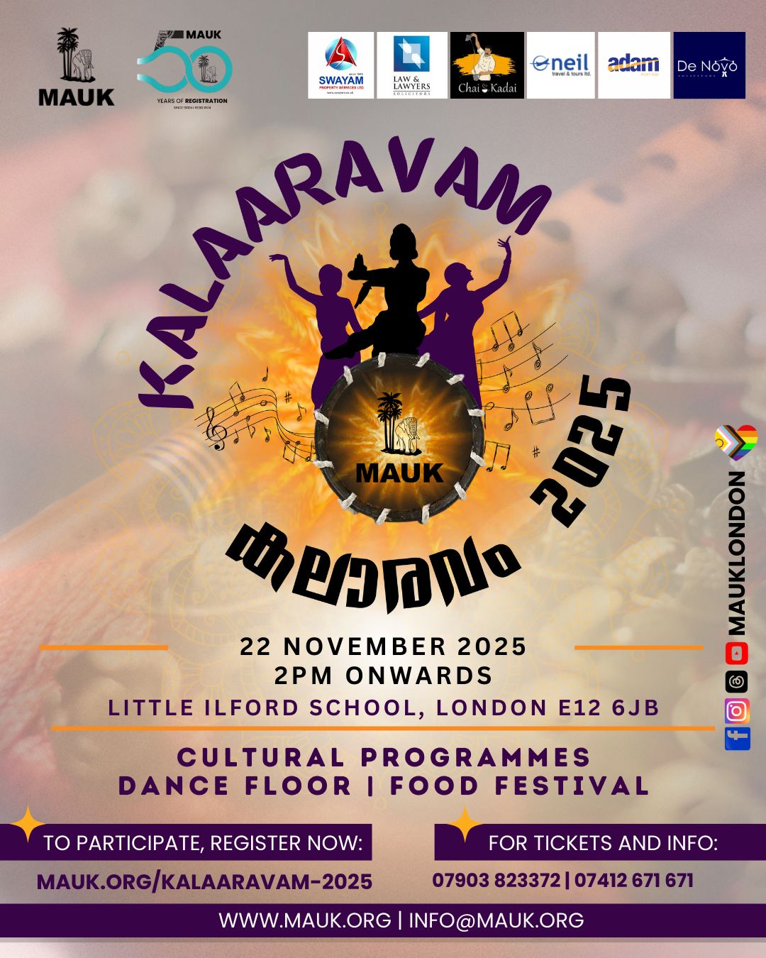 Get ready for an unforgettable evening of celebration, creativity, and community at MAUK Kalaaravam 2025!